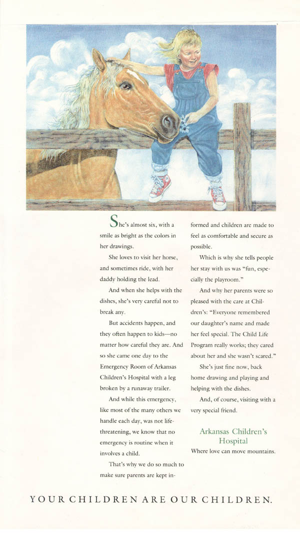 Keith Brenton Debbie Strobel 4-Color Newspaper Arkansas Children’s Hospital Cranford Johnson Robinson Woods 1988 |
