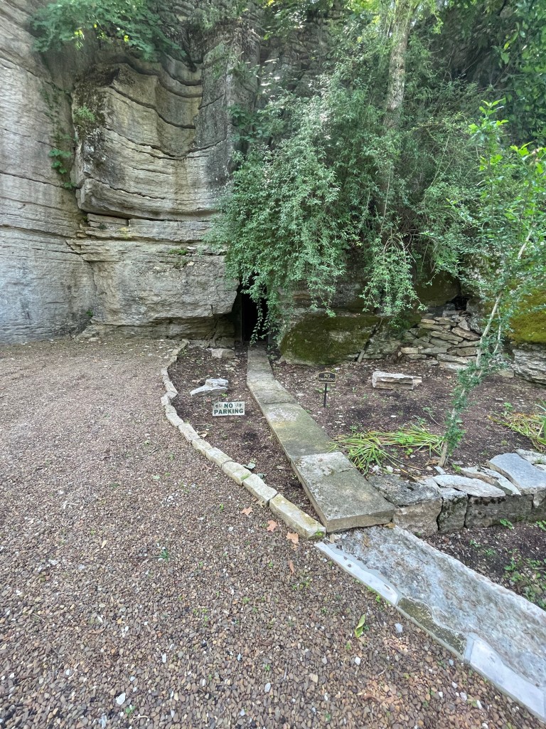 This beautiful spring reservation is a must-stop for visitors in cars or on the tour tram. Inside its natural cave — enhanced by a stone arch — the temperature is cool and there is almost always at least one candle burning in the darkness.